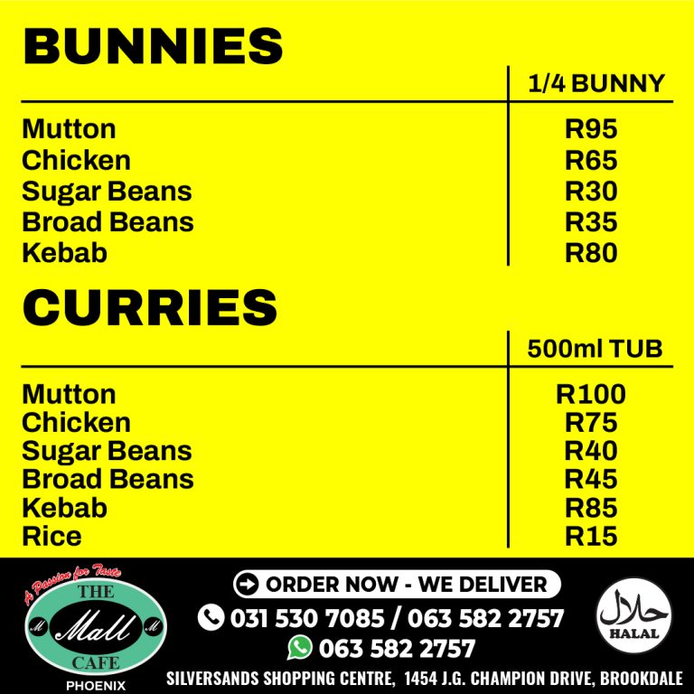 Our Menu Gatsby | Chicken Tikka | Burgers | Shawarma | Sandwiches | Pasta | Bunnies & Curries | Breyani | Soji | Side Items | Download Our Menu | Specials Deliciously Delivered to Your Doorstep We are pleased to introduce three new delivery options: Uber Eats, Mr D, and our exclusive in-house Mall Delivery. Savor the elegance of our cuisine wherever you are.
